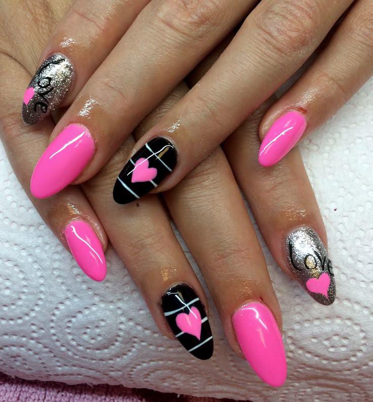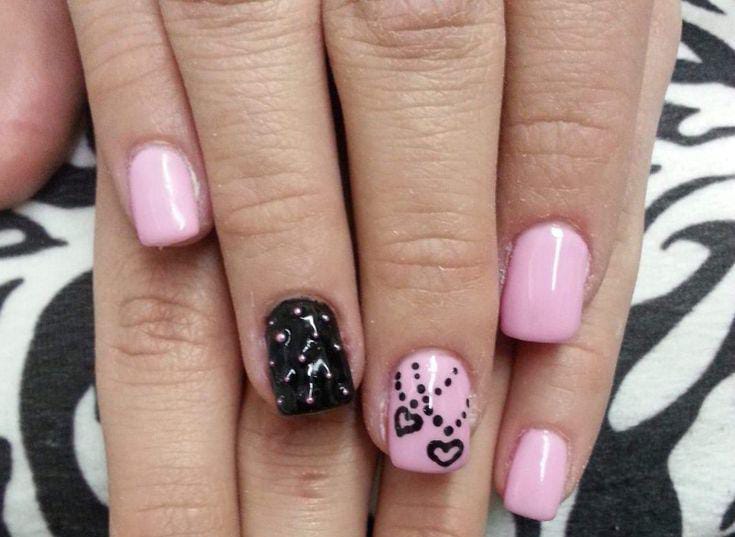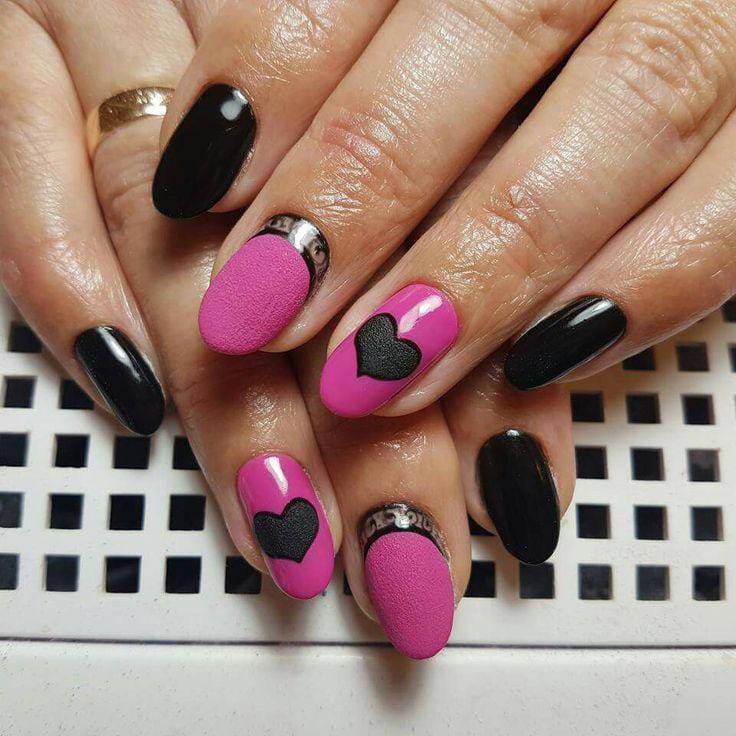 Bold Meets Sweet with These Black And Pink Valentines Nails