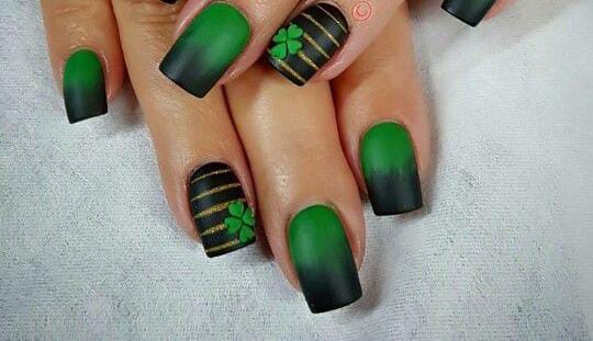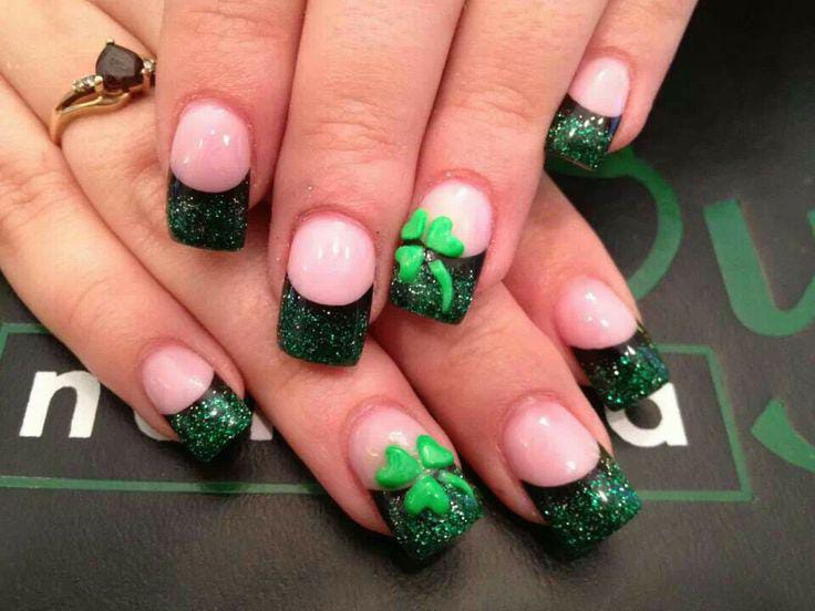 This set blends black and green with a nude ombré effect and subtle glitter for a smooth, elegant look. The clover details add a clear St. Patrick’s Day touch while keeping the style bold and chic.