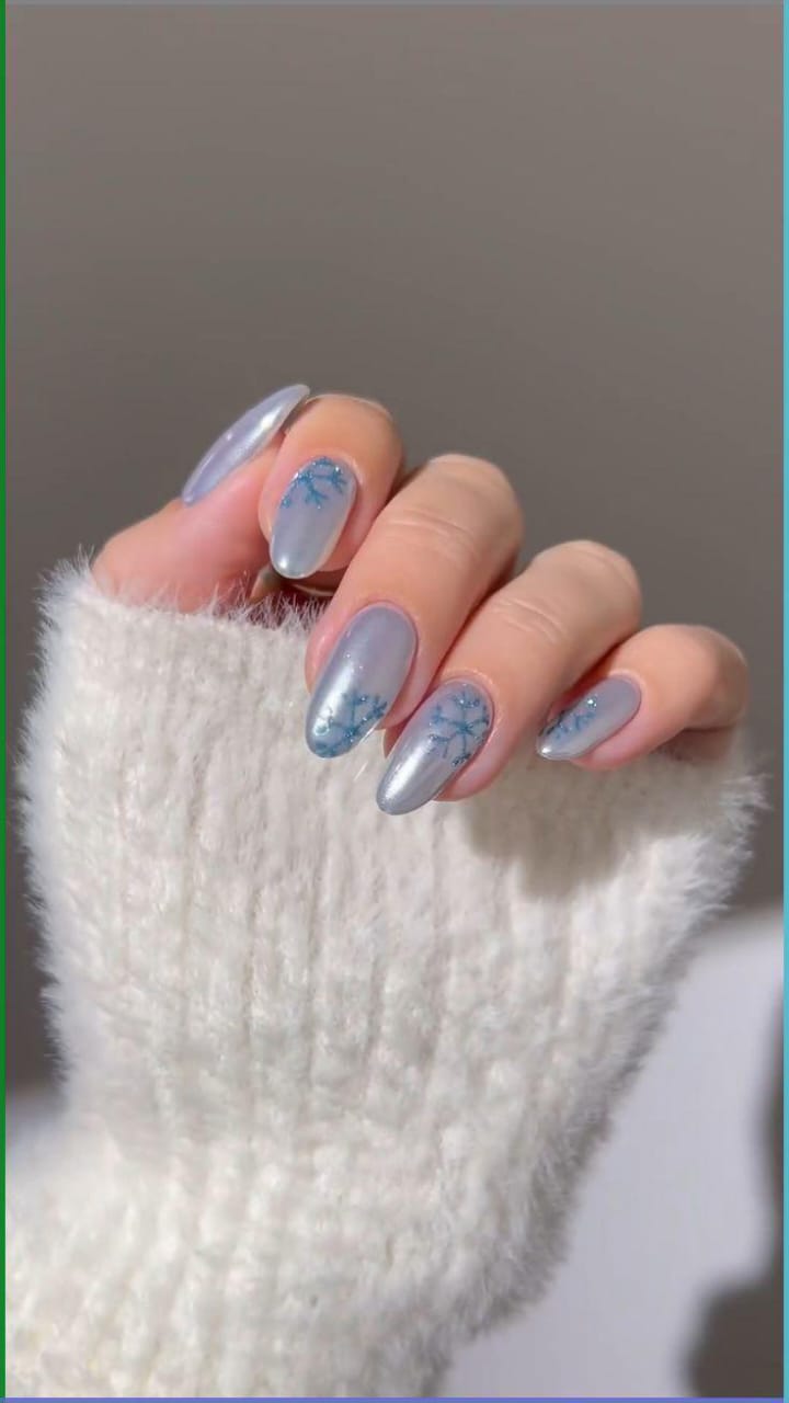 This set uses a pearly silver-blue base with subtle blue snowflakes, giving a soft, glowy, frozen effect. It’s delicate, minimal, and beautifully January charm.