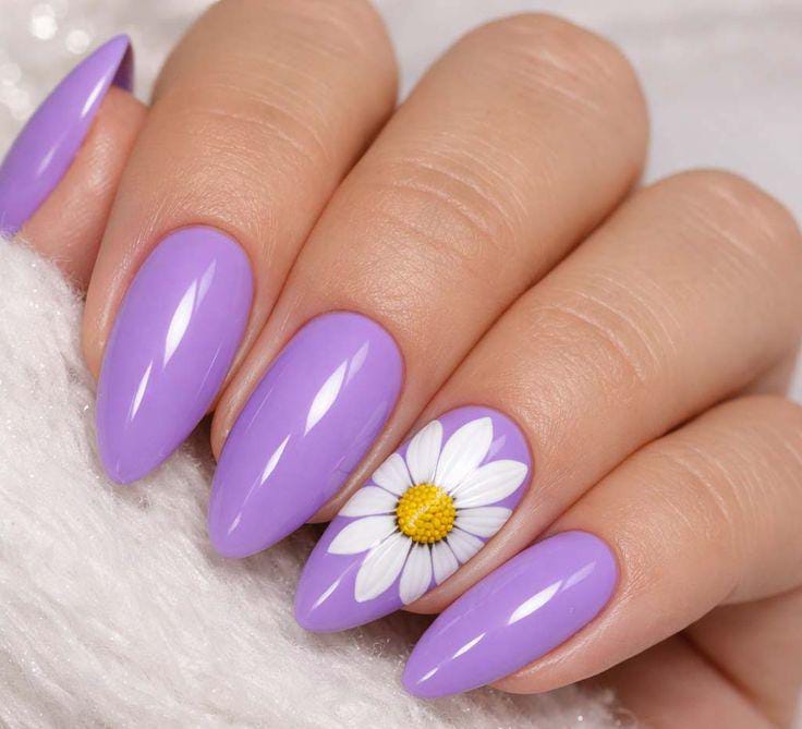 A smooth lavender base is accented with a single white daisy for a playful yet minimal look. It’s cheerful, clean, and perfect for adding a pop of summer color without going too bold.