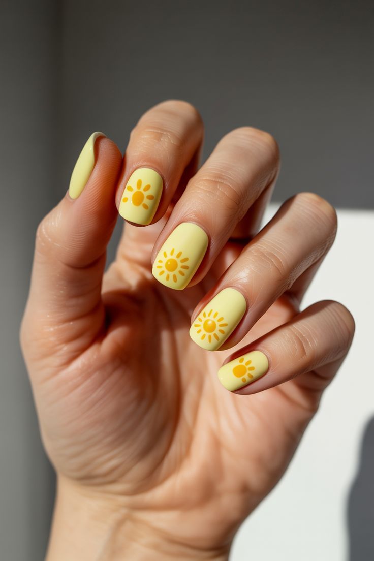 A cheerful yellow matte design with simple, bold sunflowers that give a warm, sunny feel—perfect for a fresh, summer look.