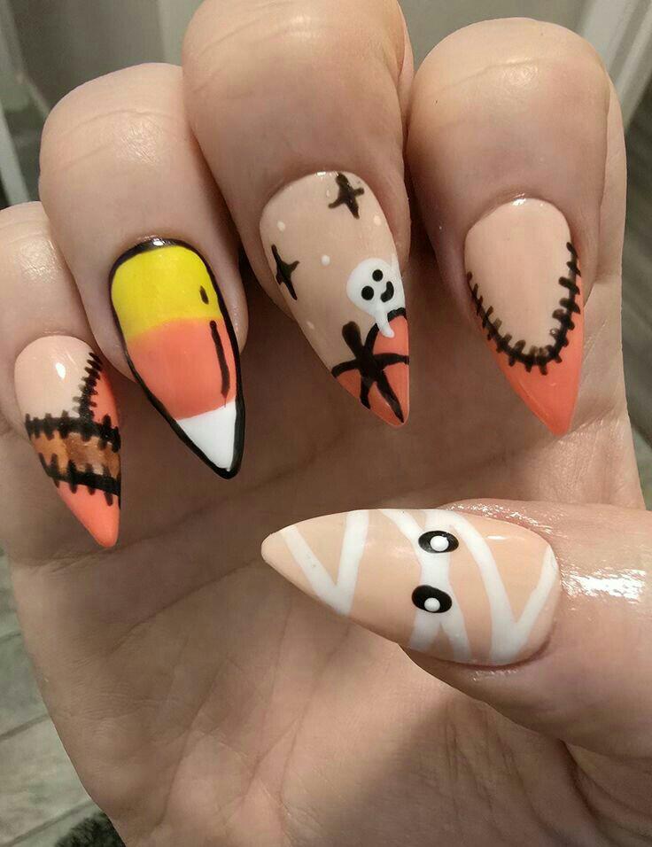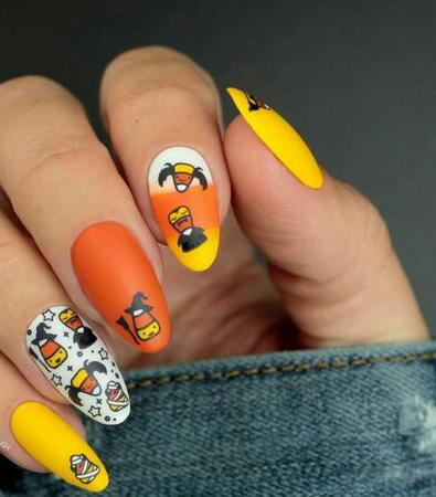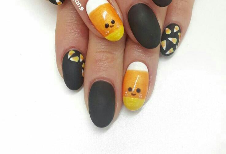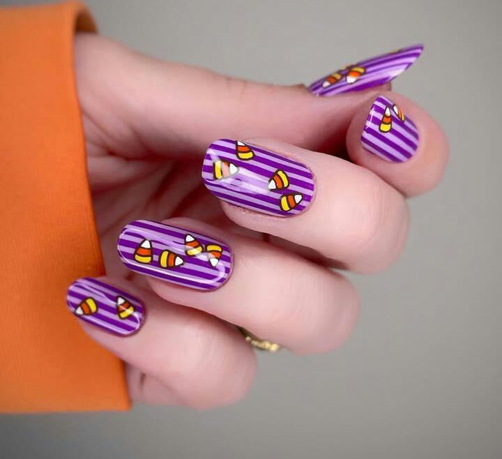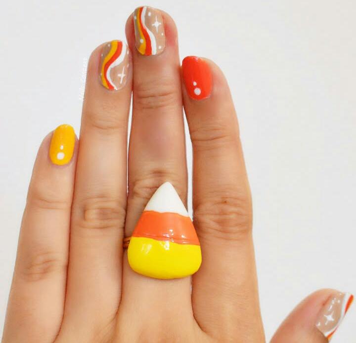 Pumpkin designs bring the cozy, spider tips add the spooky, but candy corn nails?”