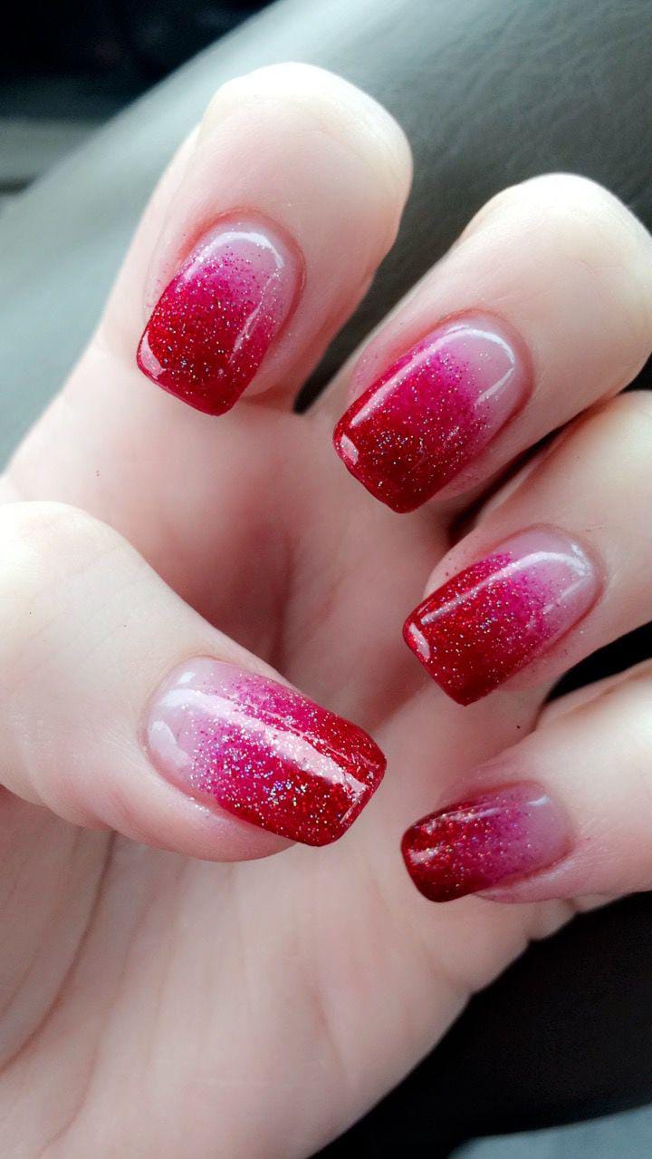 Rich red and pink hues melt into a soft ombre shimmer, giving a glamorous, festive sparkle perfect for holiday parties and Christmas cheer.