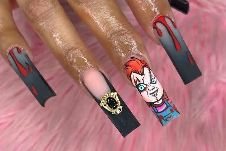 From mischievous little details to bold, dramatic flair, Chucky nails show that spooky can be fun, playful, and totally unforgettable—perfect for anyone looking to level up their horror-inspired nail game.