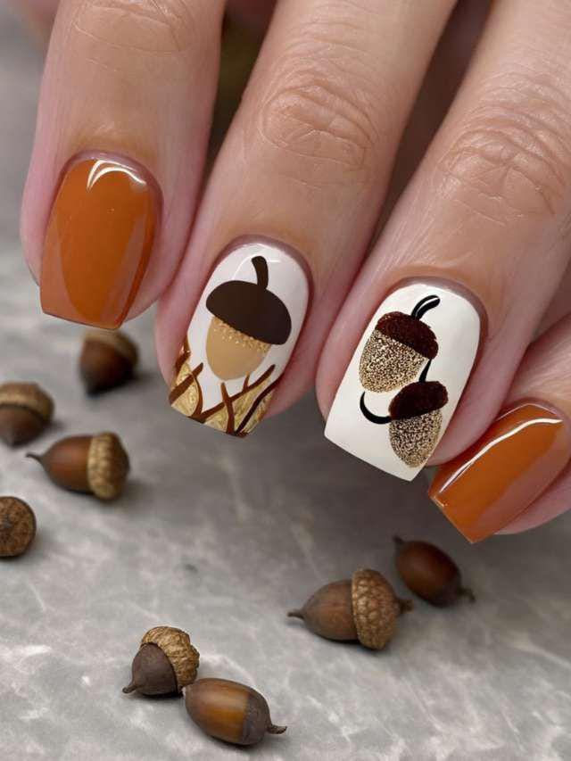 Warm brown and caramel shades meet creamy neutrals, accented with acorn artwork that feels cozy and seasonal, perfect for crisp November days.