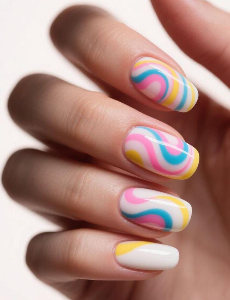 Beachy Pastel Wave Nails