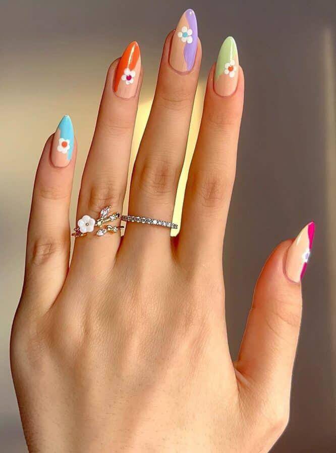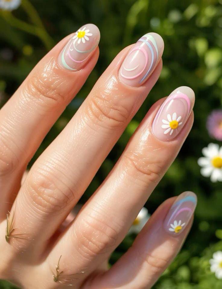 Pastel Daisy Dream Nails