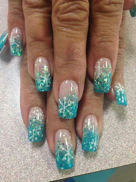 This design features a bold turquoise-to-clear gradient topped with sparkling glitter and crisp white snowflakes, giving it a fun and frosty winter vibe. It feels playful, bright, and perfect for kicking off a chilly January.