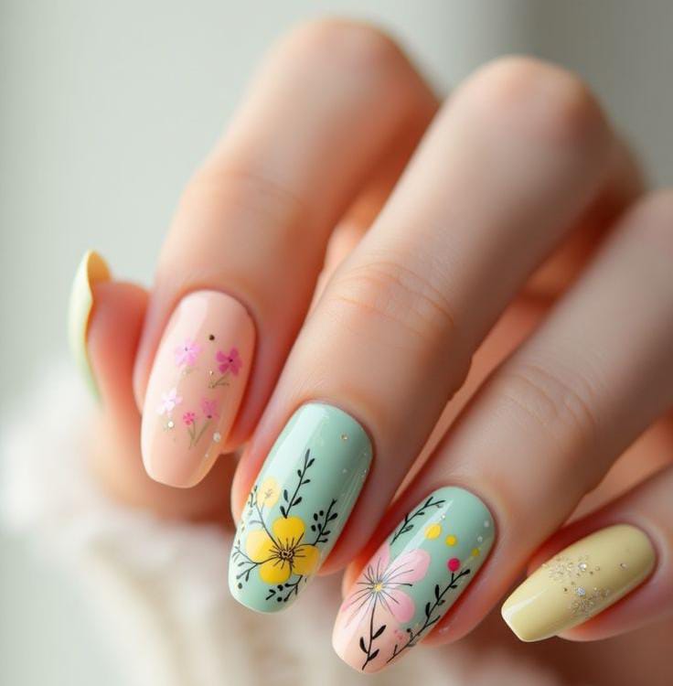 Pastel Wildflower Garden Nails