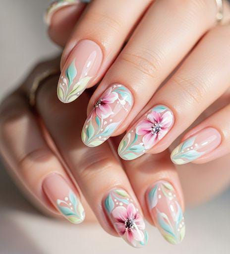 Delicate Garden Blossom Nails