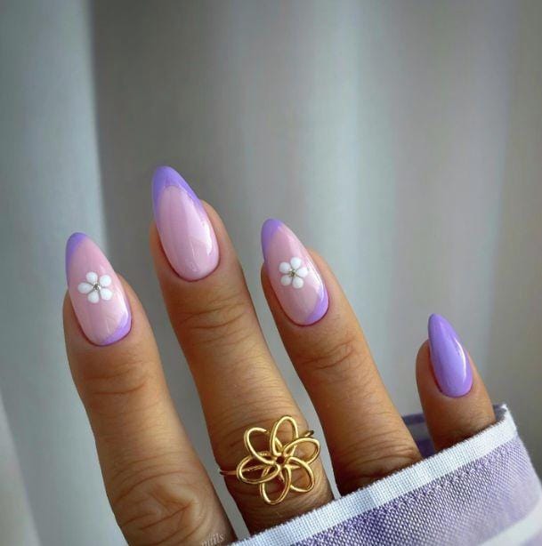 A dreamy lavender gradient blends softly into natural pink tones, creating a delicate spring look. Small white flower accents add a sweet, floral touch that makes the design feel fresh, elegant, and perfect for Easter.