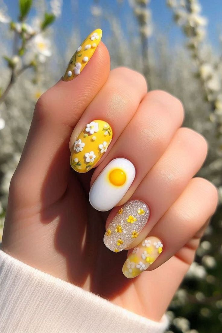 This is basically the colorful cousin to all those sugary spring sets and the dainty rabbit inspired looks that take over our feeds every Easter. Keep scrolling, because these Easter designs are way too cute to miss.