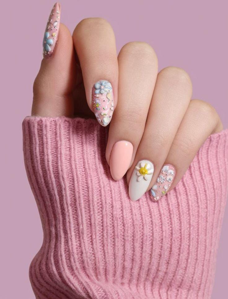 “Think pastel dreams, tiny floral accents, and that sweet, fresh feeling that makes your hands look straight-up festive.”