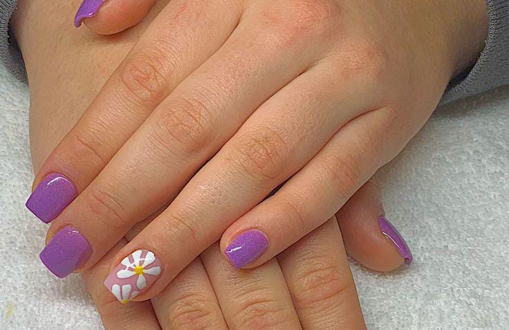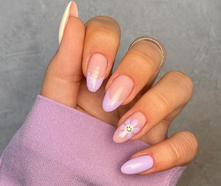 Lavender Daisy Spring Nails