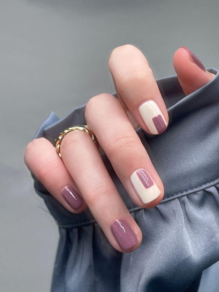 A chic mix of muted mauve and soft ivory with bold rectangular accents, this design balances minimalism with sophistication, making it perfect for a polished everyday look.