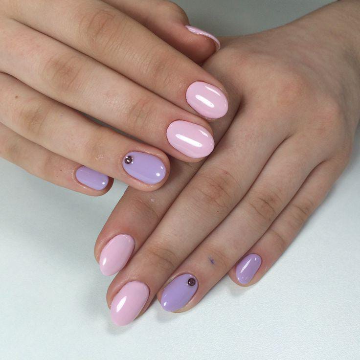 This design features a clean mix of soft lavender and blush pink shades with a glossy finish. Minimal rhinestone accents add a subtle and romantic Valentine touch.