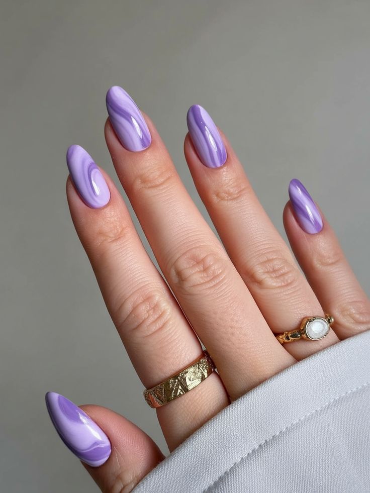 Lavender nails with gentle marbled swirls deliver a modern and dreamy effect. The look is sleek, polished, and effortlessly stylish.