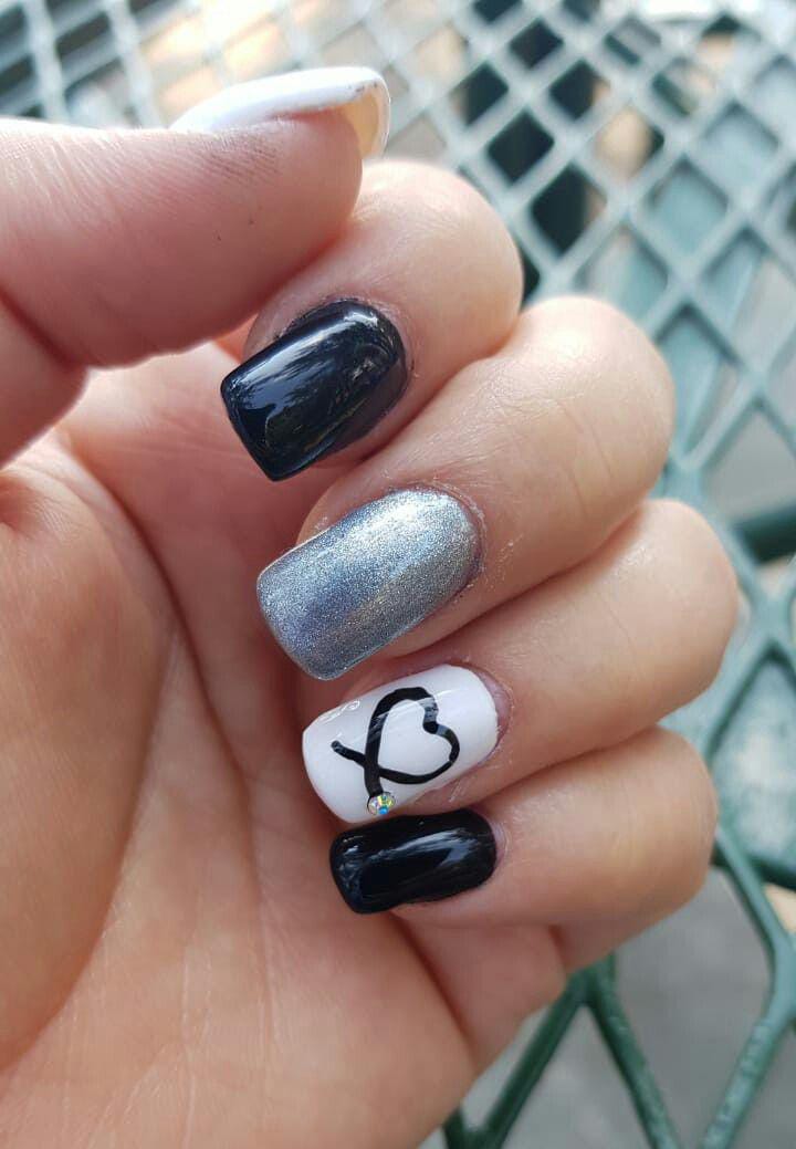 Black, silver, and white tones create a modern contrast with a single heart line accent. The style is minimal, chic Valentine, and slightly edgy.