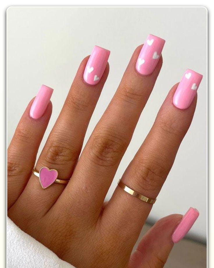 Soft pastel shades mix with tiny heart details for a playful yet clean Valentine look. The overall vibe is light, cheerful, and minimal without feeling busy.