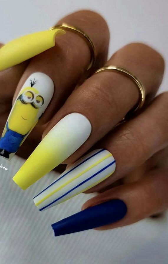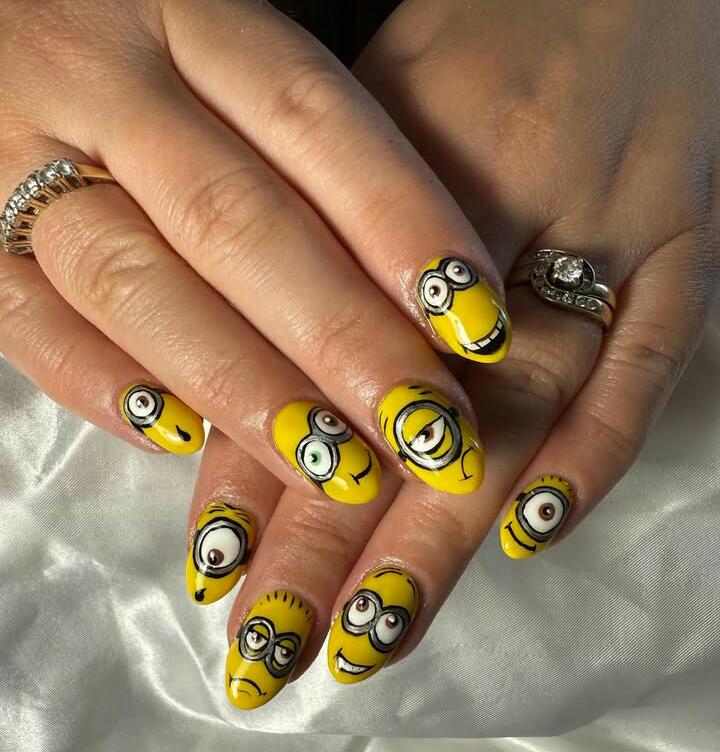 Minion nails bring that perfect mix of silly and stylish, with their bold yellows and cheeky little faces turning every manicure into a conversation starter.