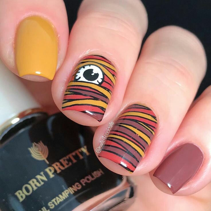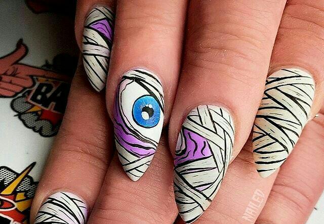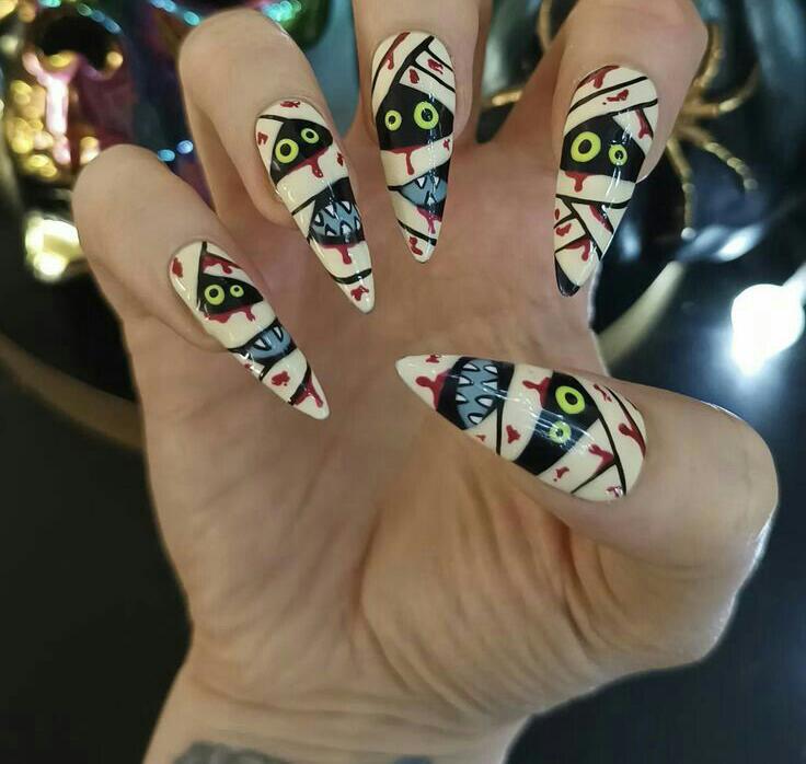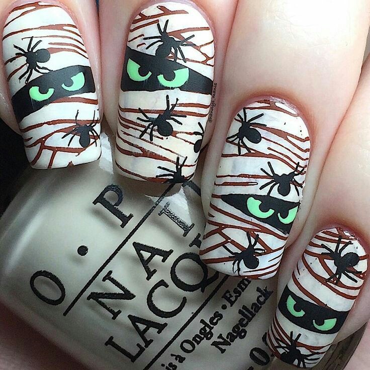 If you’re ready to wrap your fingertips in a little spooky fun, these mummy-inspired nails are the perfect mix of creepy-cute vibes.