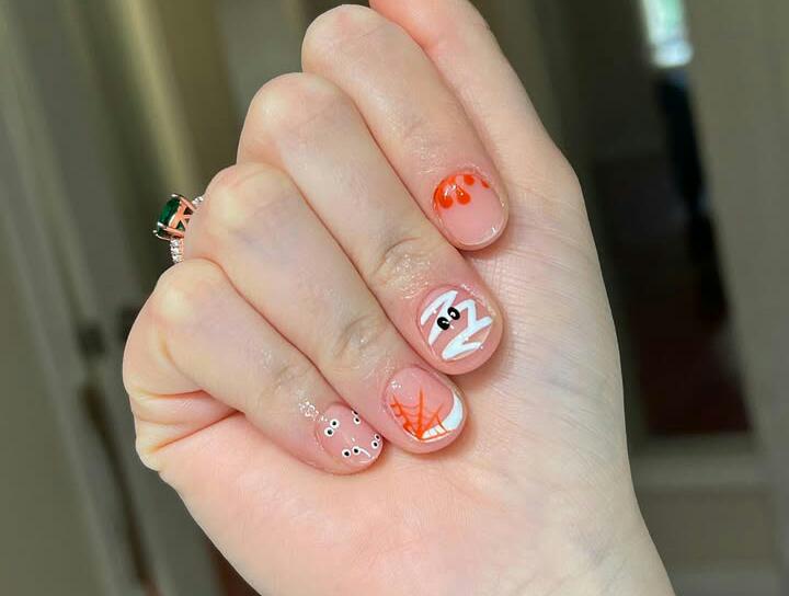 “Layered wraps and subtle textures make each nail feel like a tiny Halloween surprise.”