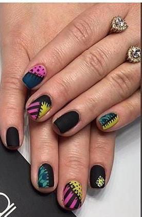 Featuring abstract pieces of Sally’s patchwork dress, this nail art is colorful, geometric, and fashion-forward. The use of almond-shaped tips and clean color blocking.
