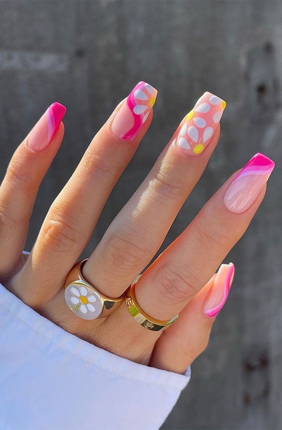 Spring is the perfect time to let your nails bloom with a playful mix of soft pastels and sunny pops, and what’s more cheerful than pairing flirty pinks with a hint of sunshine.