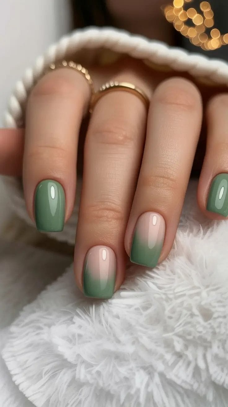A smooth sage green fades into a sheer nude base, creating a clean and airy ombré look. The glossy finish keeps it elegant, minimal, and perfect for a fresh spring aesthetic.
