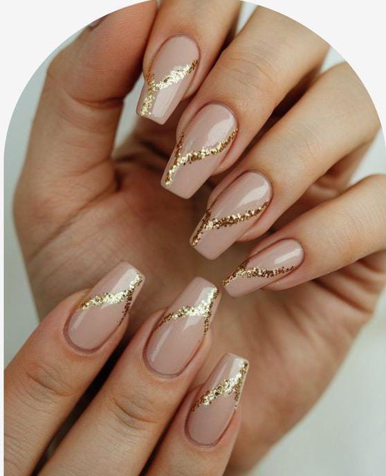 A nude base paired with soft, wavy gold glitter stripes gives this design a warm, elegant twist for January winter. It’s minimal but luxurious, perfect for starting the year with something simple and classy.