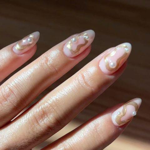 This design uses soft nude tones with raised, wavy 3D accents and tiny pearls, giving the nails a chic and artistic look. It’s simple in color but elevated in texture, offering a unique winter-soft January aesthetic.