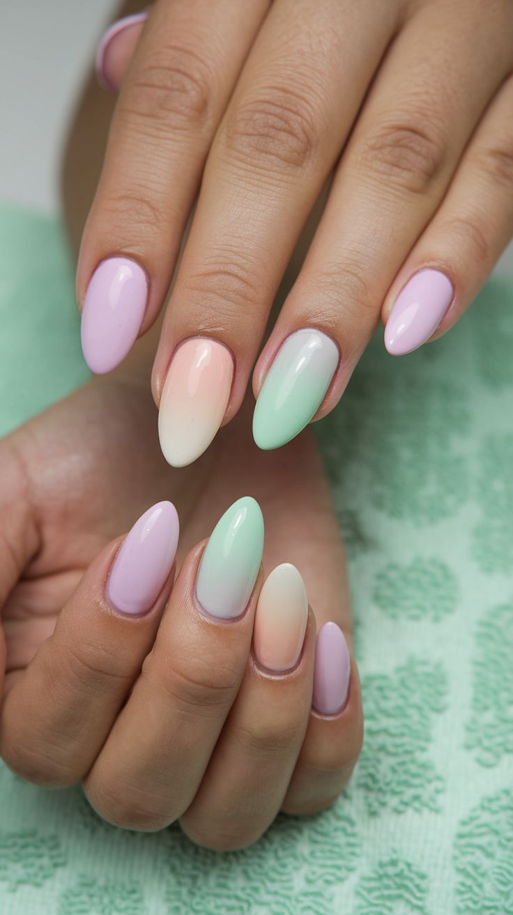 This design mixes soft pastel shades like lilac, mint, and peach in a smooth, subtle gradient. The look is playful yet calm, giving off a light springtime glow.