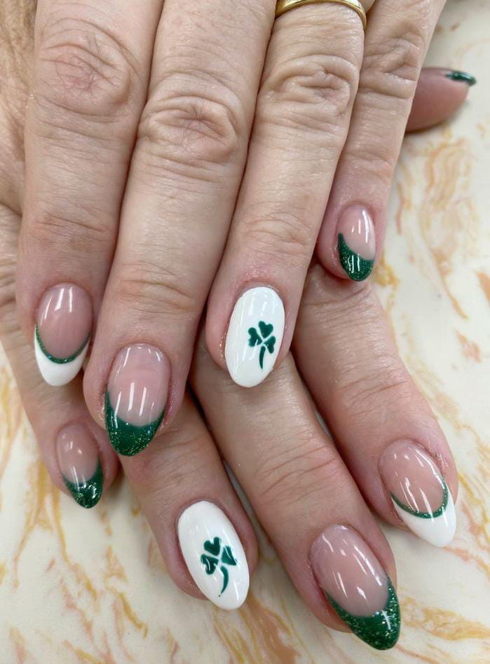 Green French Tips with Lucky Clovers