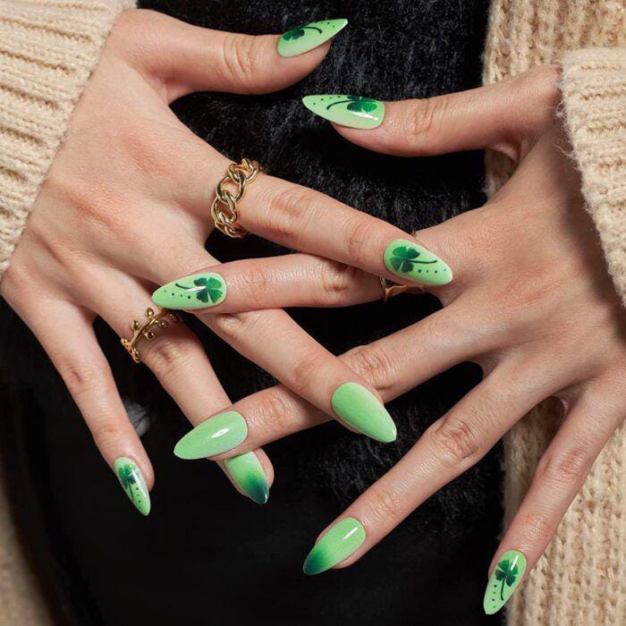 Lucky Clover Almond Nails