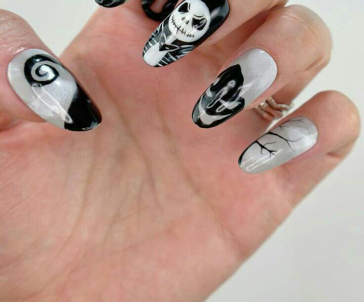 They bring a creepy-cool vibe to your manicure, blending the bony detail you’d expect from skull-inspired designs with the slasher-style edge that calls back to Ghostface in one wicked look. Let’s dig up some killer designsQ