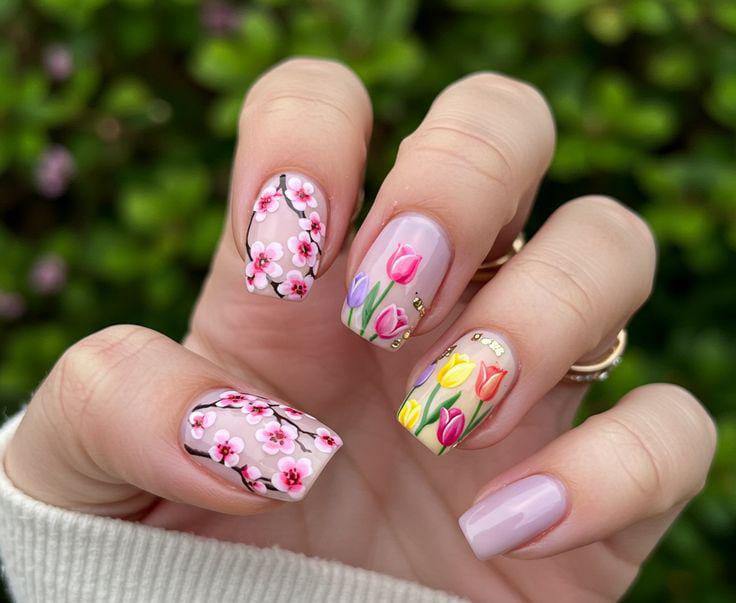Spring Tulip & Blossom Mix Nails