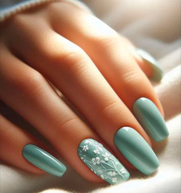 Mint Blossom Nails