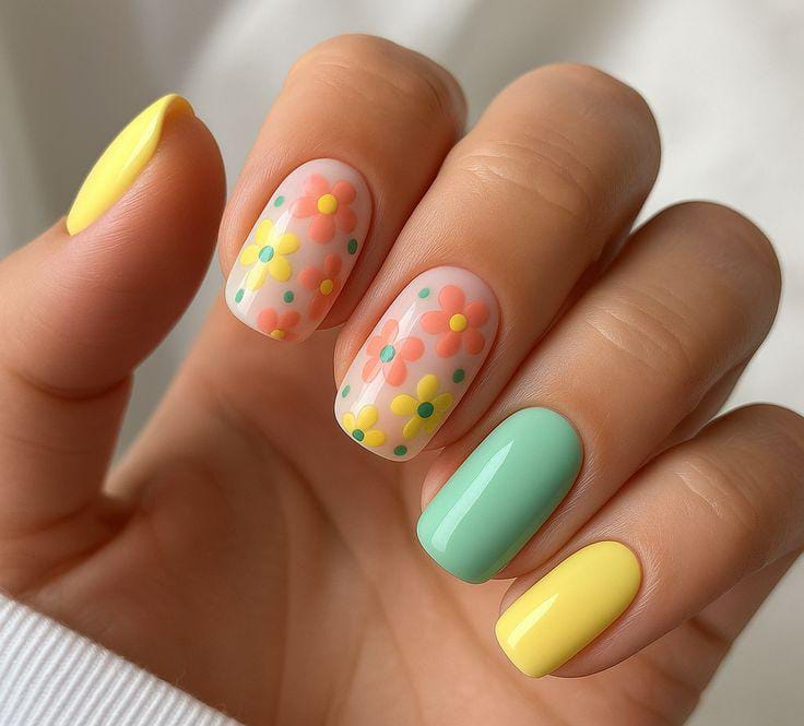 Pastel Daisy Garden Nails