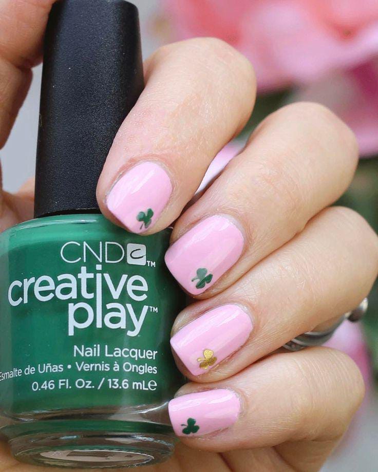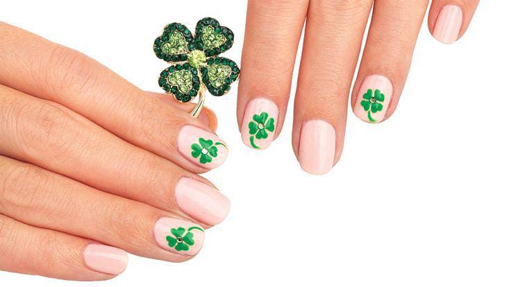 “Think tiny clovers tucked into neutral tones, soft golden sparkles, or just a whisper of shamrock charm on your tips.”