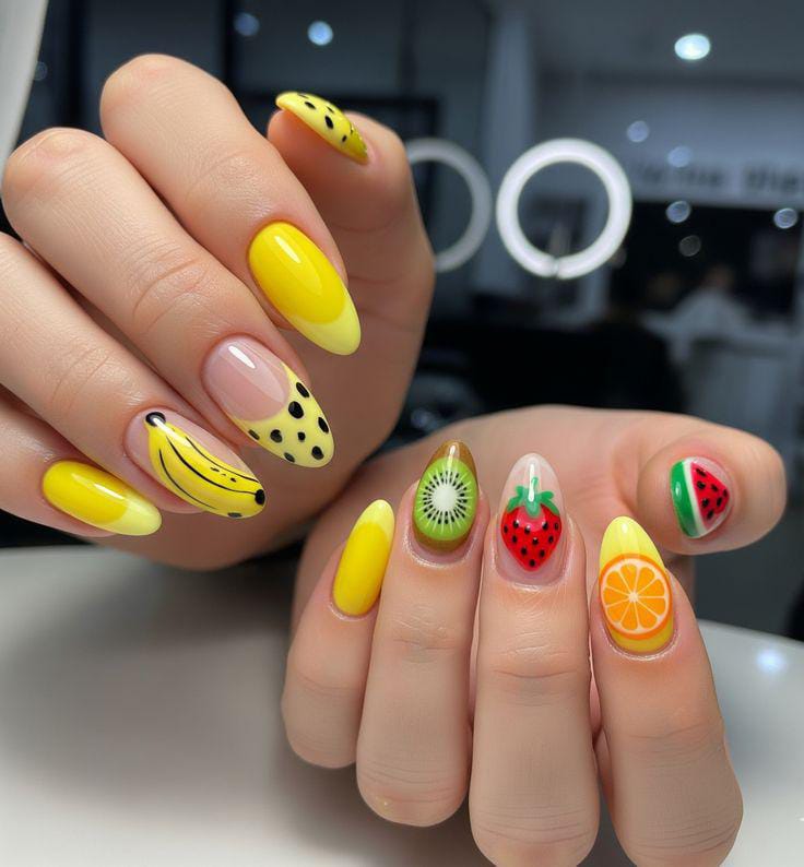If your nails are about to be the star of every iced coffee pic, beach selfie, and sunny day outfit, fruit themed designs are the cutest way to make it happen.