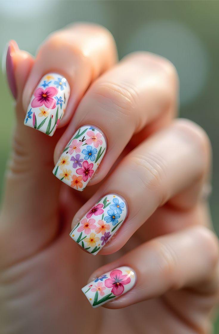 Pastel Meadow Square Nails