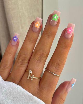 Pastel Flower French Square Nails