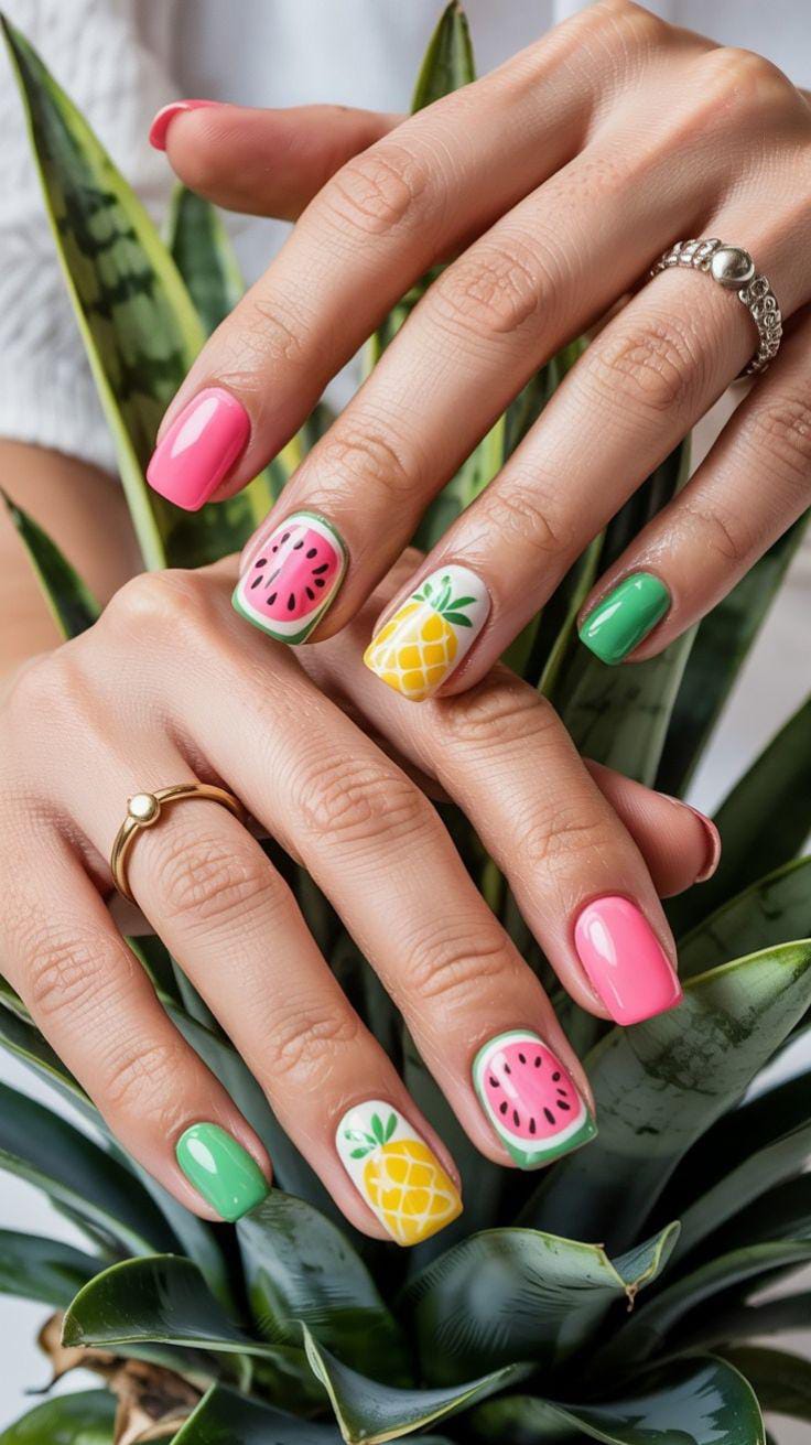 Tropical Fruit Pop Square Nails