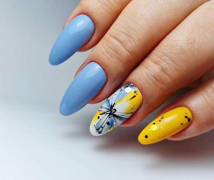 Yellow And Blue Spring Nails That Scream Sunshine and Clear Skies